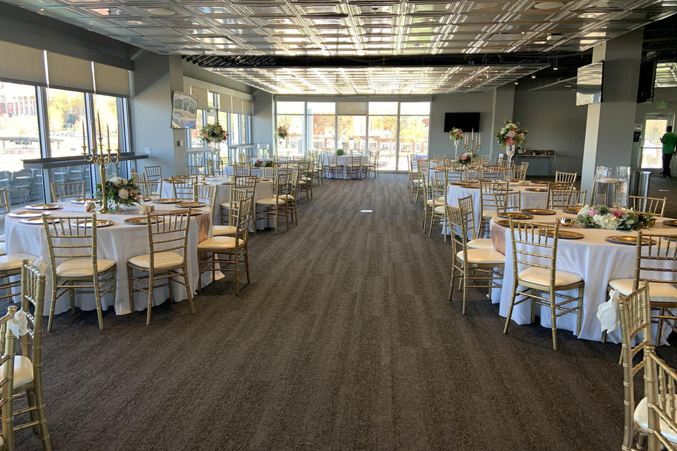 The Kinetic Club is a premium indoor destination for formal gatherings or large corporate events. This large event space with full windows boasts an exceptional view of Atrium Health Ballpark as the ideal backdrop for any event.